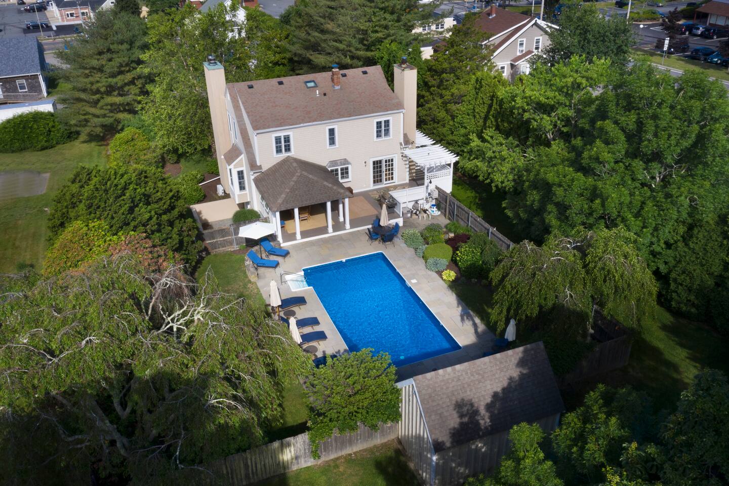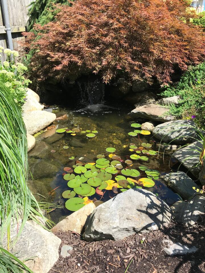This secluded property boasts a charming exterior with a heated, in-ground, saltwater swimming pool (open from late May to late September), a decorative pond with a waterfall, and a veranda and deck perfect for outdoor entertaining. The high-end, eat-in kitchen is equipped with all necessary appliances and amenities, featuring doors that lead out to the deck and pool area. The second floor includes a spacious primary bedroom with an en-suite bath, along with two additional bedrooms that share a full bathroom. The first-floor den can serve as a separate family room or an additional bedroom, complete with a queen sleeper sofa and a full bathroom just down the hallway. Additional overflow space is available in the finished basement, which also houses a ping pong table, 72" Smart TV & laundry room. From October to May, discounted rates are available for weekly or monthly rentals. Please contact us for further details.